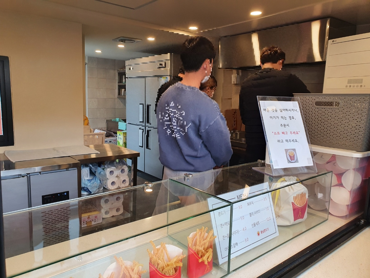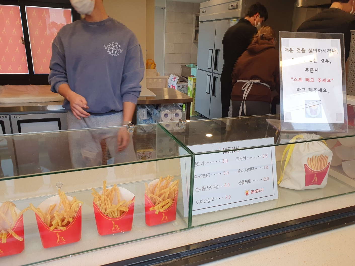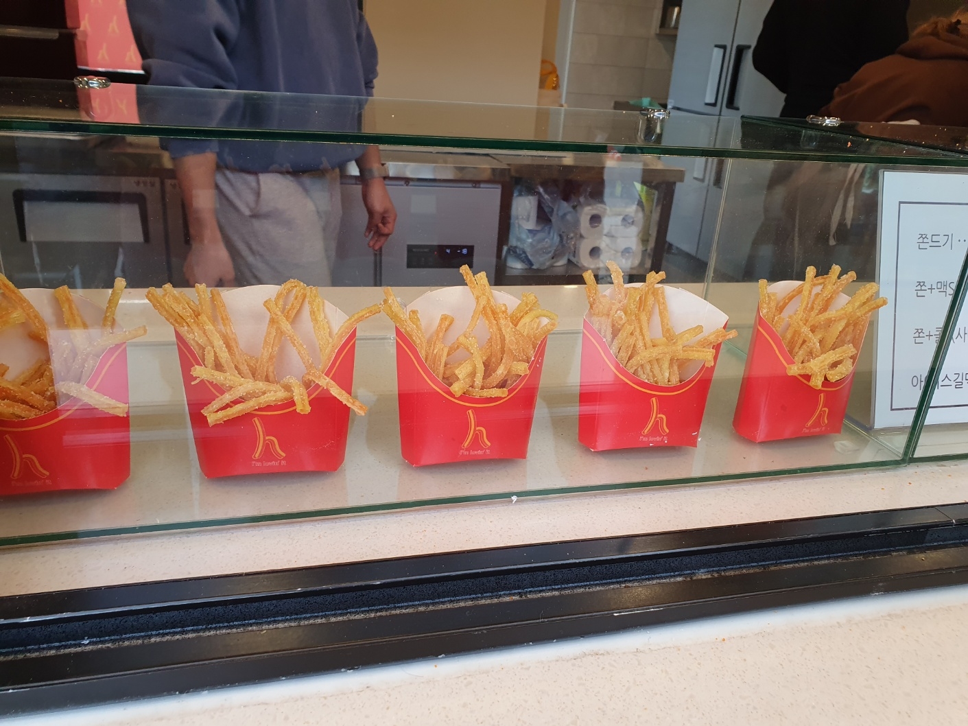 한 분이 주문받고 3분이서 쫀드기를 조리하는데,,,, 세상에나..기기를 하나만 사용하더라고요... 여기서 오래 기다렸어요.... 생각보다 늦게 나와서...슬로우푸드구나....쫀드기...조리하는 쪽에 3분이나 계시던데... 뭔가 오픈한지 얼마 안 돼서 그런 건지.. 시스템이 착착 돌아가는 느낌은 안 들었어요~
