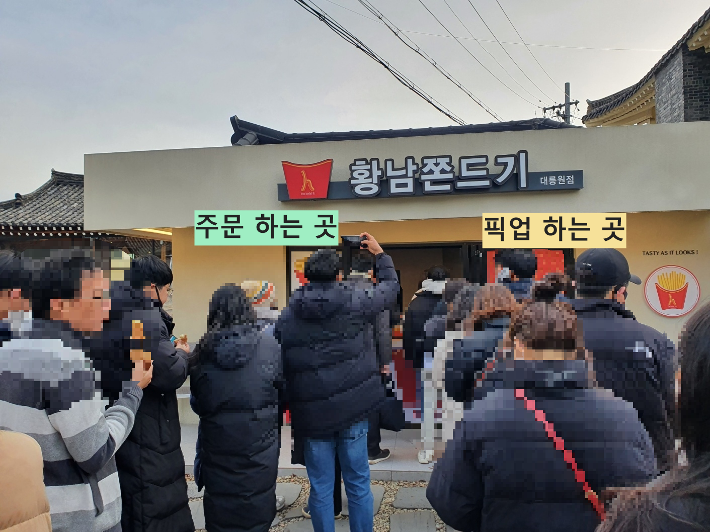 드디어 발견한 다른 지점! 생긴지 얼마 안 된 것 같았는데 입구에 있는 "황남쫀드기" 보다 사람들이 훨씬 없길래 바로 냉큼 줄을 섰답니다. ㅎㅎㅎ