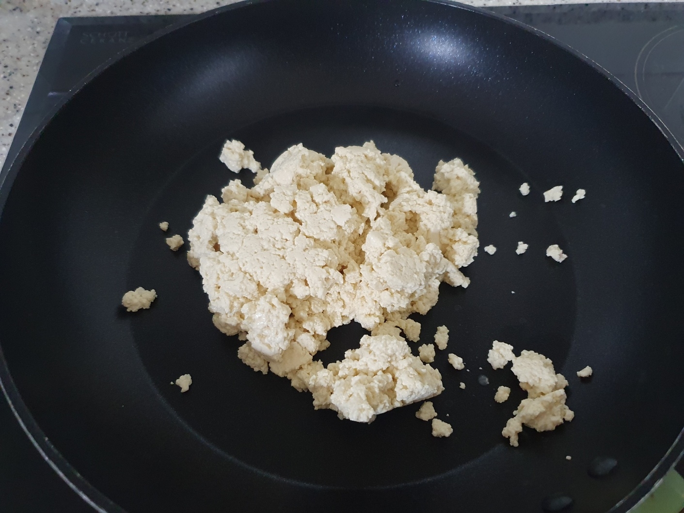 ② 두부를 으깨준 뒤 후라이팬에서 조리