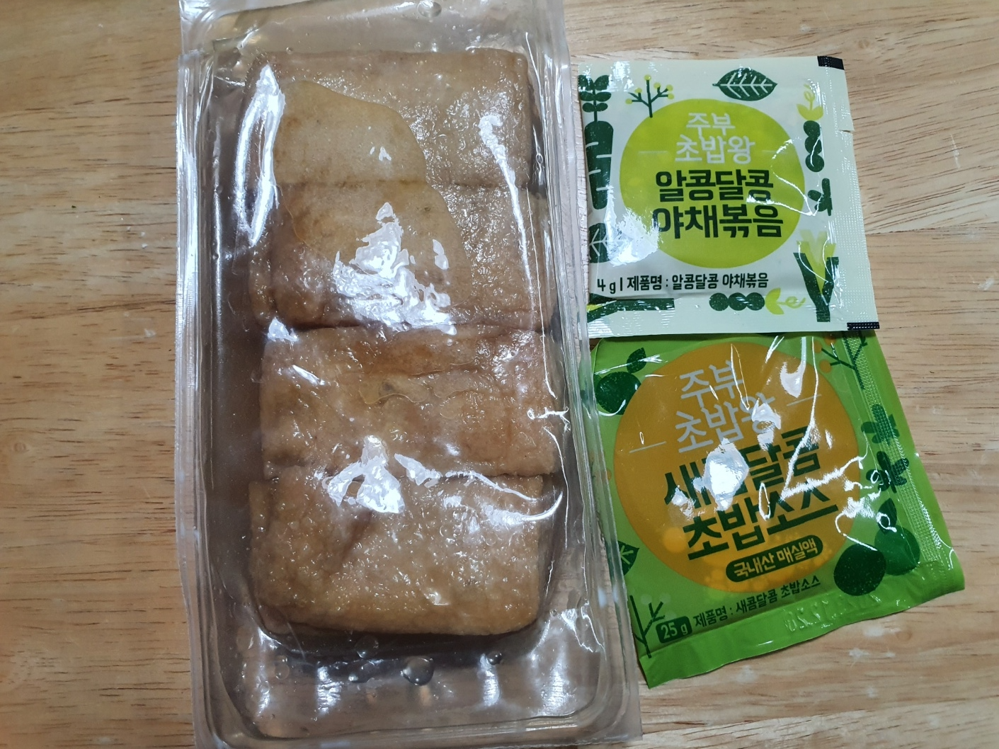 시중에 판매되는 유부인데요, 절임소스에 푹 절여져있어요!! 간을 좀 더 세게 해서 먹고싶으면 살작만 수분을 제거 해 주세요!! 다이어트를 위해 저는 절임소스 팍팍 짜서 준비했어요~ 그리고 새콤달콤 초밥소스도 4/3만 넣었답니다!! 더 맛있게 먹으려면 다 넣으셔도 될 것 같아요!!