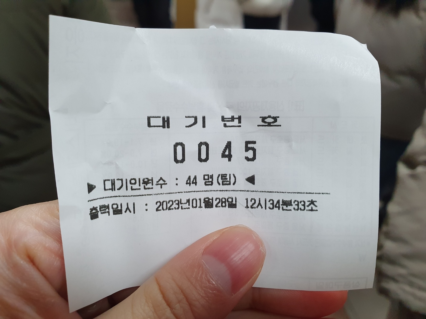 이렇게 대기번호를 주시는데요,,, 저 앞에... 44팀....... 오마갓.... 너무 식사시간에 와서 그런걸까요... 대기가 너무 많았어요.. 44팀 기다린시간은 한 40분 정도 기다렸다가 자리 안내 받았어요~