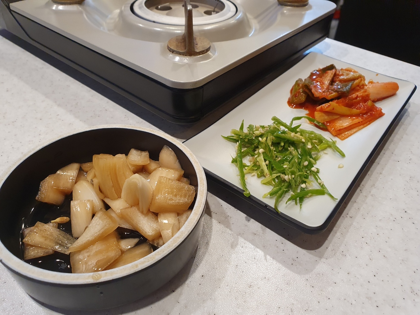 그리고 파김치랑 양파절임이 나오는데요, 파김치는 곱창 구워주시면서 같이 나중에 구워주시더라구요!! 또 요게 별미더라구요!!