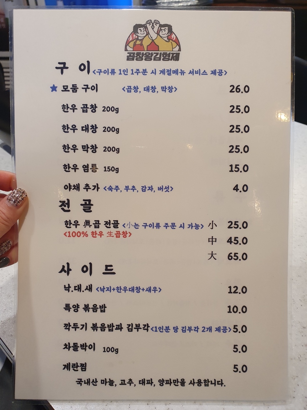 🥘 양재역 곱창맛집 <곱창왕김형제> 양재역본점 메뉴