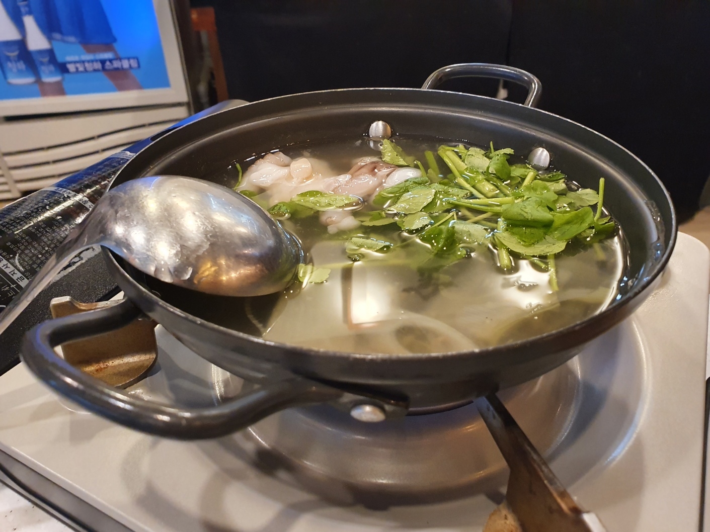 기본으로 제공되는 연포탕인데요, 칼칼한 국물이 최고였어요~ 주문한 곱창이 나오기 전에 연포탕을 먼저 준비해주시더라구요~ 진짜 술이 절로 들어가는 안주들로 구성되어있어요 :D 완전 좋다 여기!!